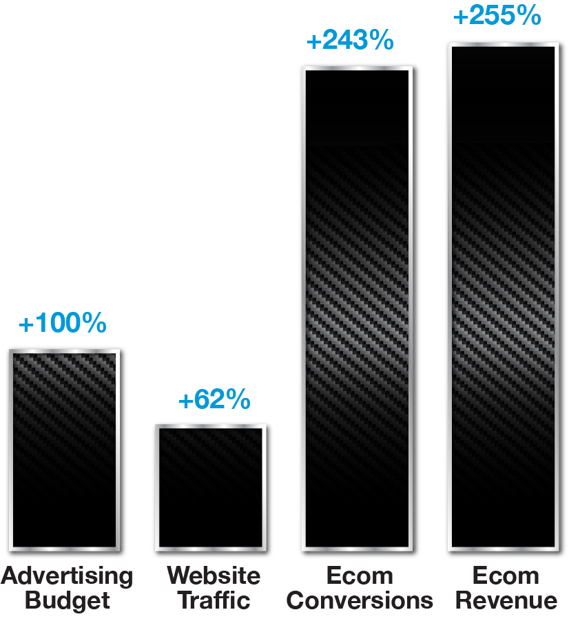 Since the transition, CAI’s eCommerce revenue has grown by more than 250%, with the main contributors being an increased spend budget (via SRM’s Advertising Budget Co-Op Initiative), influencer marketing, exploitation of eCommerce sales tools, email marketing, and an aggressive digital advertising strategy. Each of these contributors are broken down below along with some associated campaign results to show successes specific to each platform…